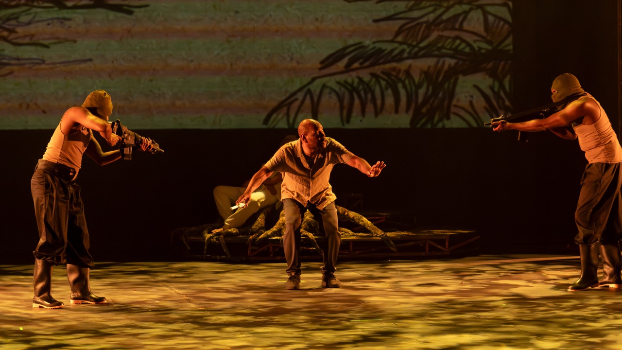 En escena, Rambao, un profesor que decide buscar justicia más allá de los límites de su comunidad, desencadena una serie de consecuencias que transforman el tejido colectivo. A través de un lenguaje que entrelaza narración, ritual y música en vivo, la obra articula mito y presente para pensar cómo la violencia, el hambre y la promesa de progreso inciden en la vida en común.