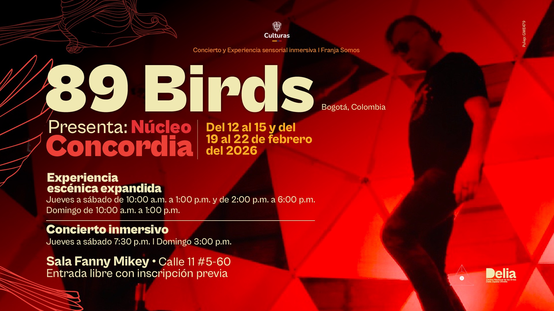 Las presentaciones en vivo de 89 Birds que se realizarán del 12 al 22 de febrero en la Sala Fanny Mikey del Centro Nacional de las Artes, activan y reconfiguran la experiencia en tiempo real, extendiéndola hacia el concierto y profundizando la relación entre sonido, espacio y escucha.