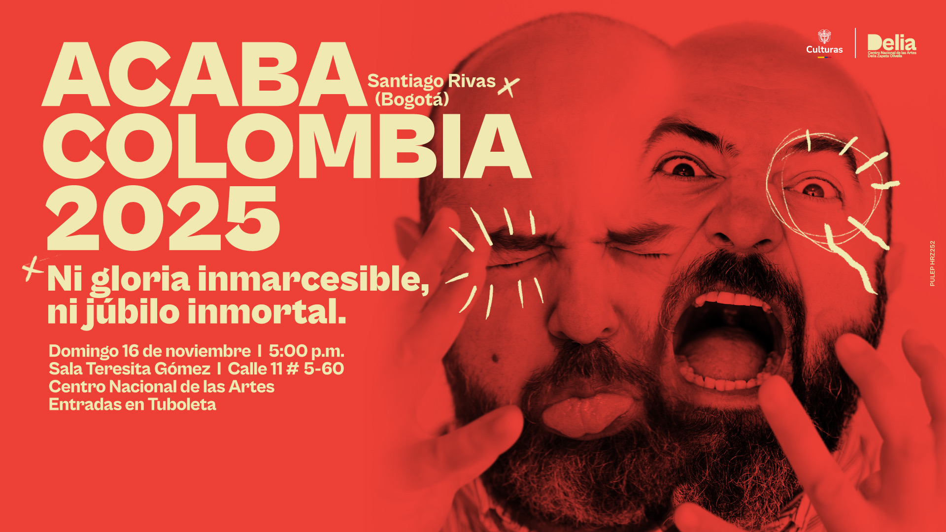El artista plástico y periodista Santiago Rivas llega por primera vez al Centro Nacional de las Artes con Acaba Colombia» es un monólogo de sátira política que parte de una idea: Colombia debería acabar, como solución a los muchísimos problemas colombianos; sin embargo, si Colombia se niega a acabarse, la propuesta es hacer terapia. En este monólogo, Santiago Rivas busca convencer al público de una o de la otra, haciendo un repaso por la historia reciente y no tan reciente de nuestro país.