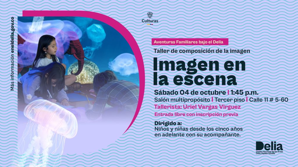 El Centro Nacional de las Artes – Delia Zapata Olivella invita a niños y niñas de 5 a 12 años, junto con sus familias, a participar en Imagen en la escena: Taller de composición de imagen, un espacio de mediación que hace parte de la línea Aventuras Familiares. El taller se llevará a cabo el sábado 4 de octubre, de 1:45 p.m. a 3:00 p.m., en el Salón Multipropósito, con entrada libre mediante inscripción previa.