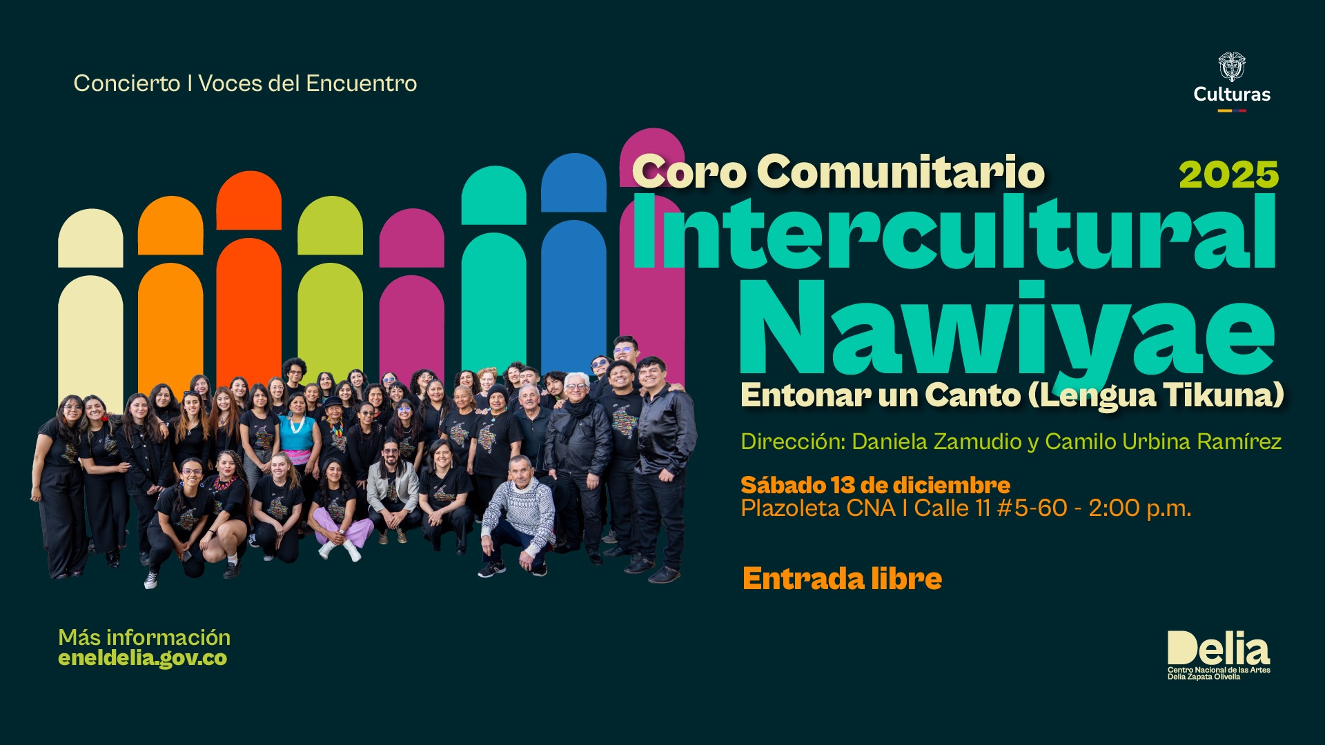 El Coro Comunitario Intercultural Nawiyae hace parte del programa de Diálogos y Experiencias Culturales del Centro Nacional de las Artes, un proceso que impulsa la creación colaborativa y el intercambio cultural desde diferentes territorios.