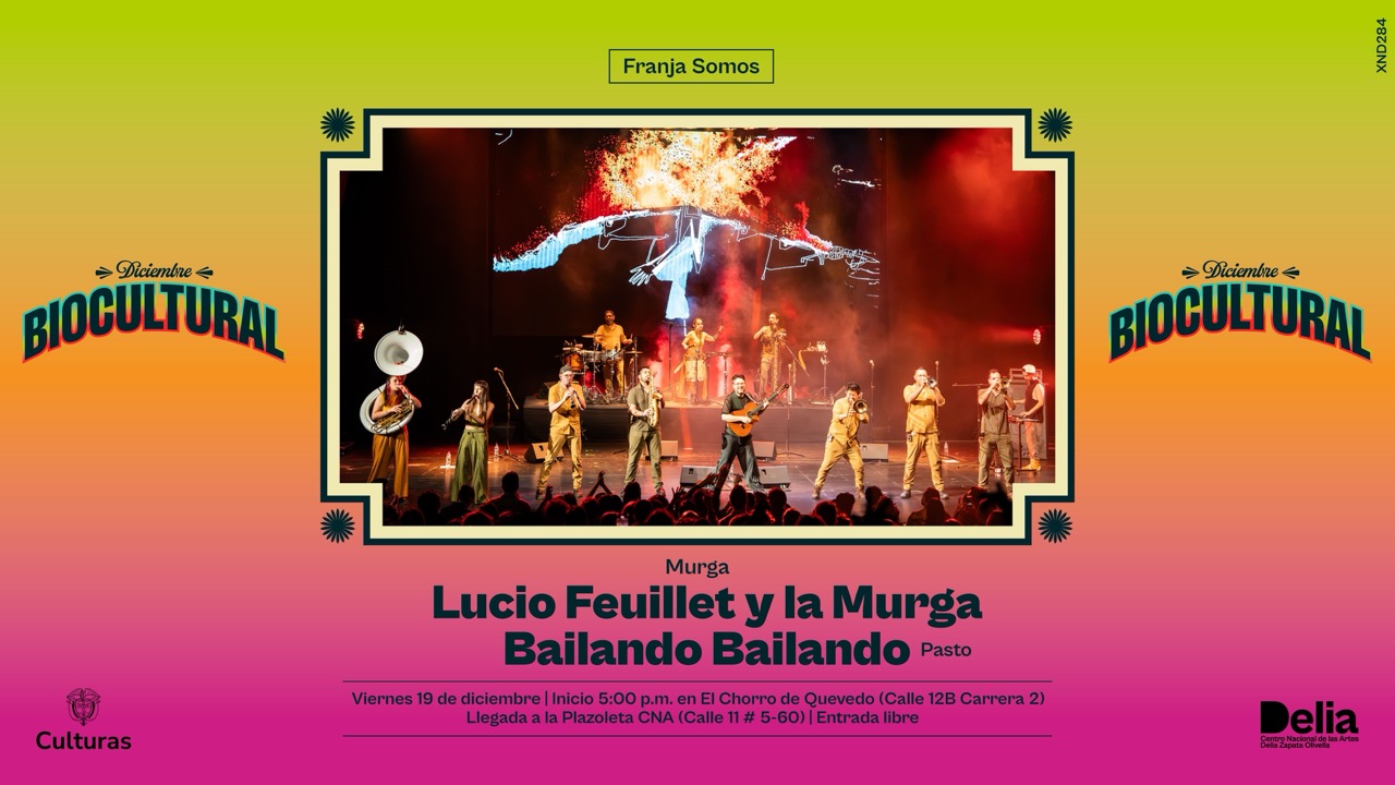 Bogotá vivirá en su corazón fundacional una experiencia musical de la mano del pastuso Lucio Feuillet y la Murga Bailando Bailando. La música empezará en el Chorro de Quevedo y culminará con un concierto en la Plazoleta del CNA. La murga integra la sensibilidad andina del sur colombiano con la energía carnavalera.