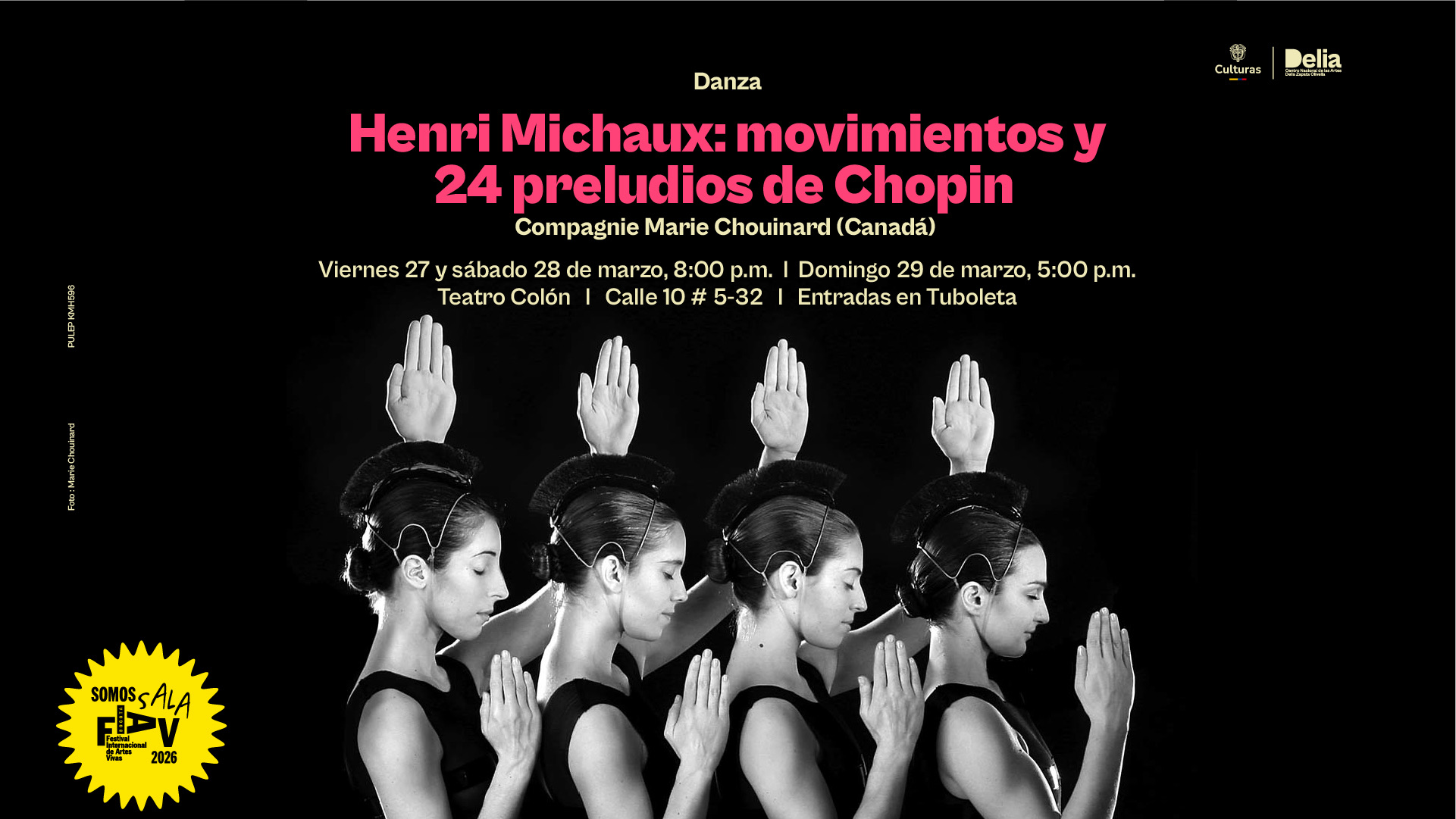 En el FIAV Bogotá, la Compagnie Marie Chouinard presentará dos de sus trabajos más reconocidos: ‘Preludios de Chopin’, inspirada en las composiciones para piano del célebre compositor polaco, y ‘Henri Michaux: Movimientos’, en la que traduce en danza los dibujos del poeta y pintor belga Henri Michaux.