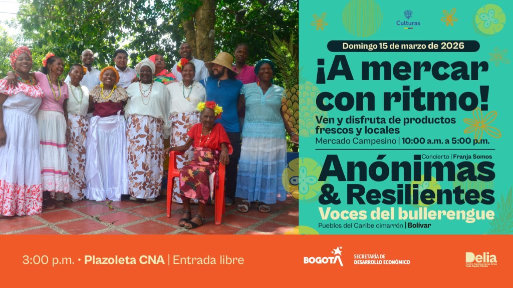 Durante el Mercado Campesino del Centro Nacional de las Artes, la plazoleta se llenará también de música y memoria con el concierto del colectivo Voces del bullerengue – Anónimas & Resilientes: cantadoras del Caribe Cimarrón, un grupo de mujeres mayores que han preservado el legado matriarcal del bullerengue en territorios rurales del Caribe colombiano. Con dos álbumes nominados al Latin Grammy Awards en 2019 y 2025, este encuentro reunirá las voces de cantadoras cuyas edades van de los 59 a los 106 años, herederas de un conocimiento ancestral que atraviesa repertorios musicales, historia oral, medicina tradicional y profundos vínculos con la tierra, la comunidad y la paz.